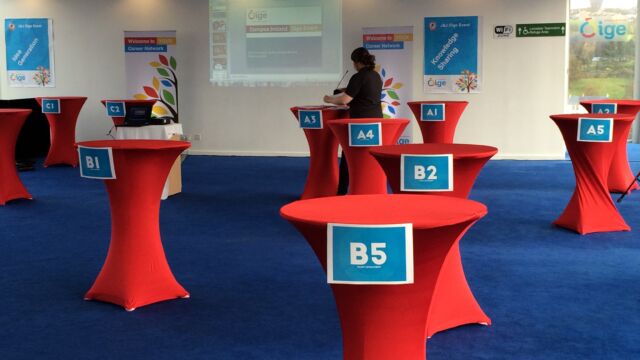 - During their conversations, everyone should make a note of one actionable insight on a post-it note, and at the end of the event, post it on the wall close to their Café.